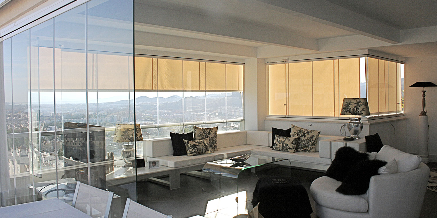 Cortines de cristall panoràmiques per tancar la terrassa. Impressionants! Es llisquen súper suaus i quan estan obertes es recullen en un lateral sense ocupar espai. Amb mal temps tanquem tot i tenim un espai protegit. Amb bon temps les obrim i queda totalment obert.