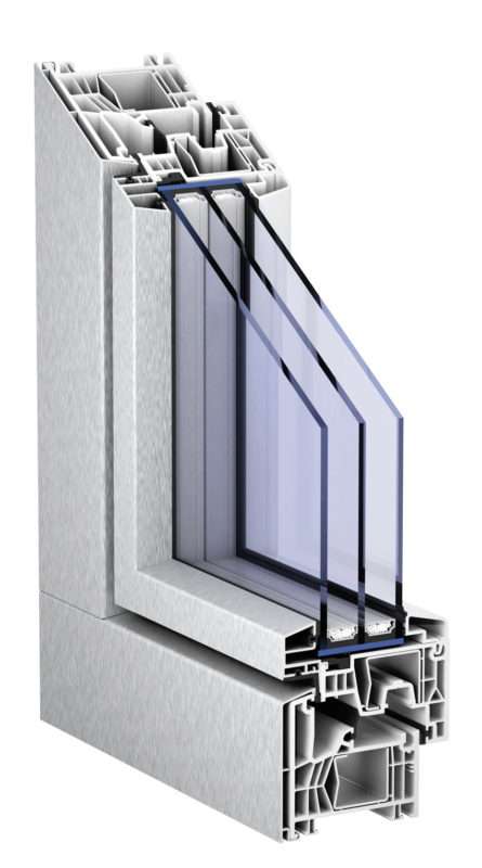 Sistema premium de ventanas PVC con 6 cámaras y 76mm de profundidad. Certificado Passivhaus. Uw desde 0,80 W/m²K, aislamiento acústico hasta 47 dB. Máximas prestaciones térmicas y de seguridad.