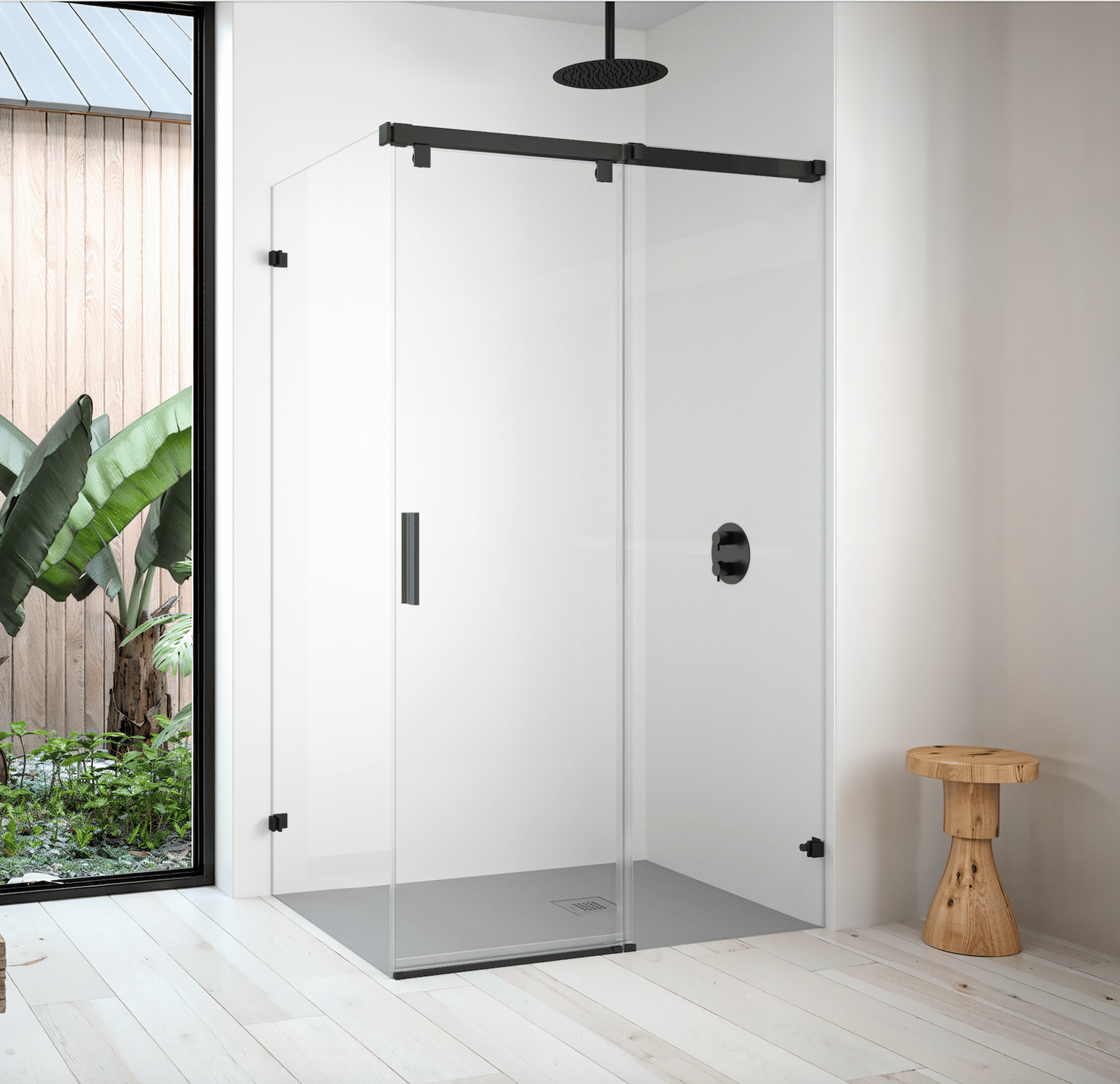 Mampara de ducha angular de una hoja corredera y una fija