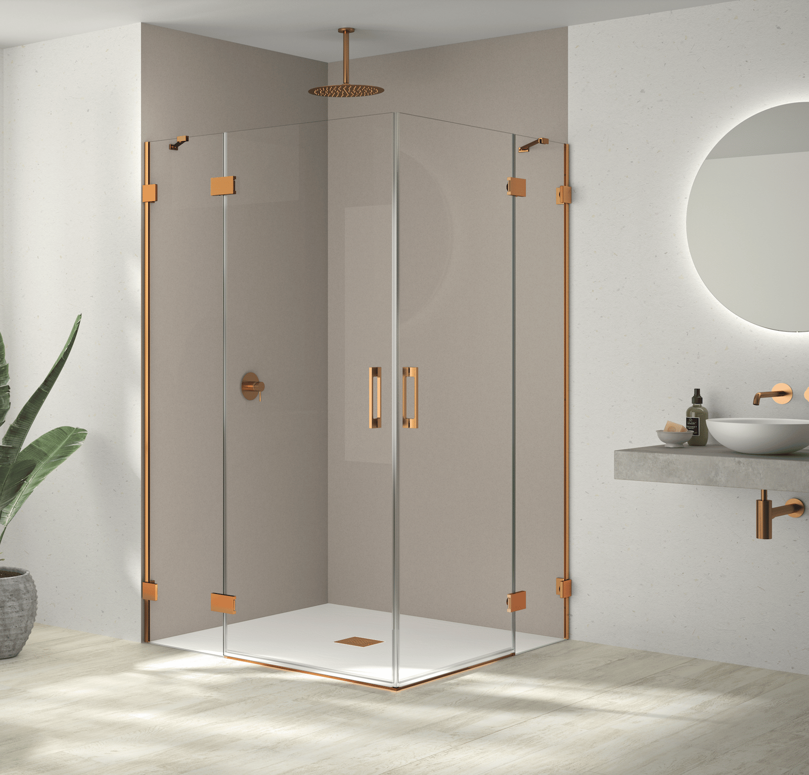 Mampara de ducha Doccia DELIA. Colección LYRA. Mampara angular de dos hojas abatibles y dos hojas fijas Vidrio de 8mm. Altura: 2000mm. Antical 2 caras.
