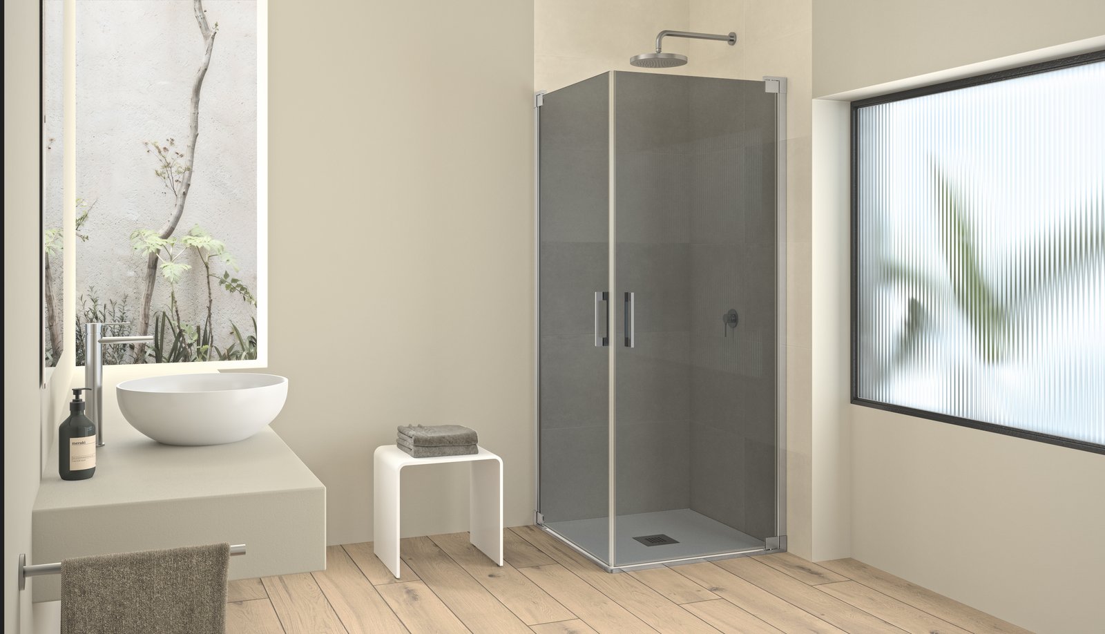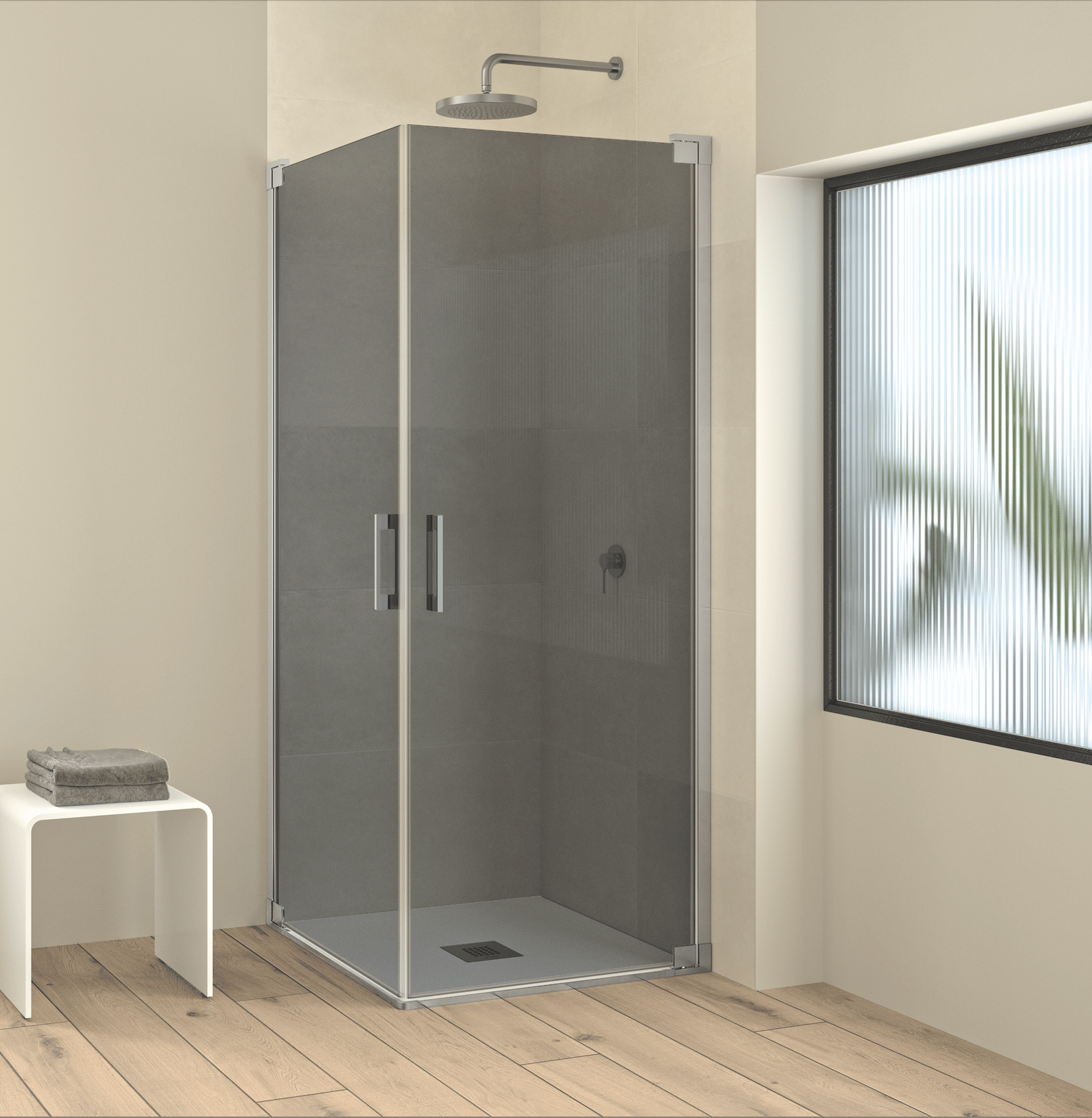 Mampara de ducha Doccia MILTON. Colección CENTAURUS. Mampara angular de una hoja abatible, reversible Vidrio de 8mm. Altura: 1950mm. Antical, Reversible.