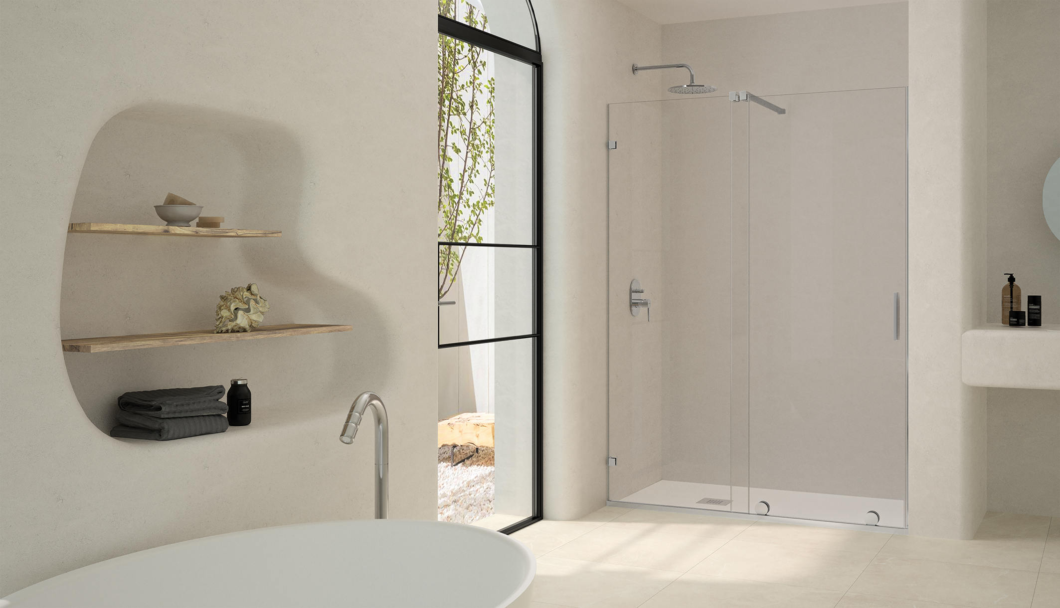 Mampara de ducha frontal de una hoja corredera y una hoja fija