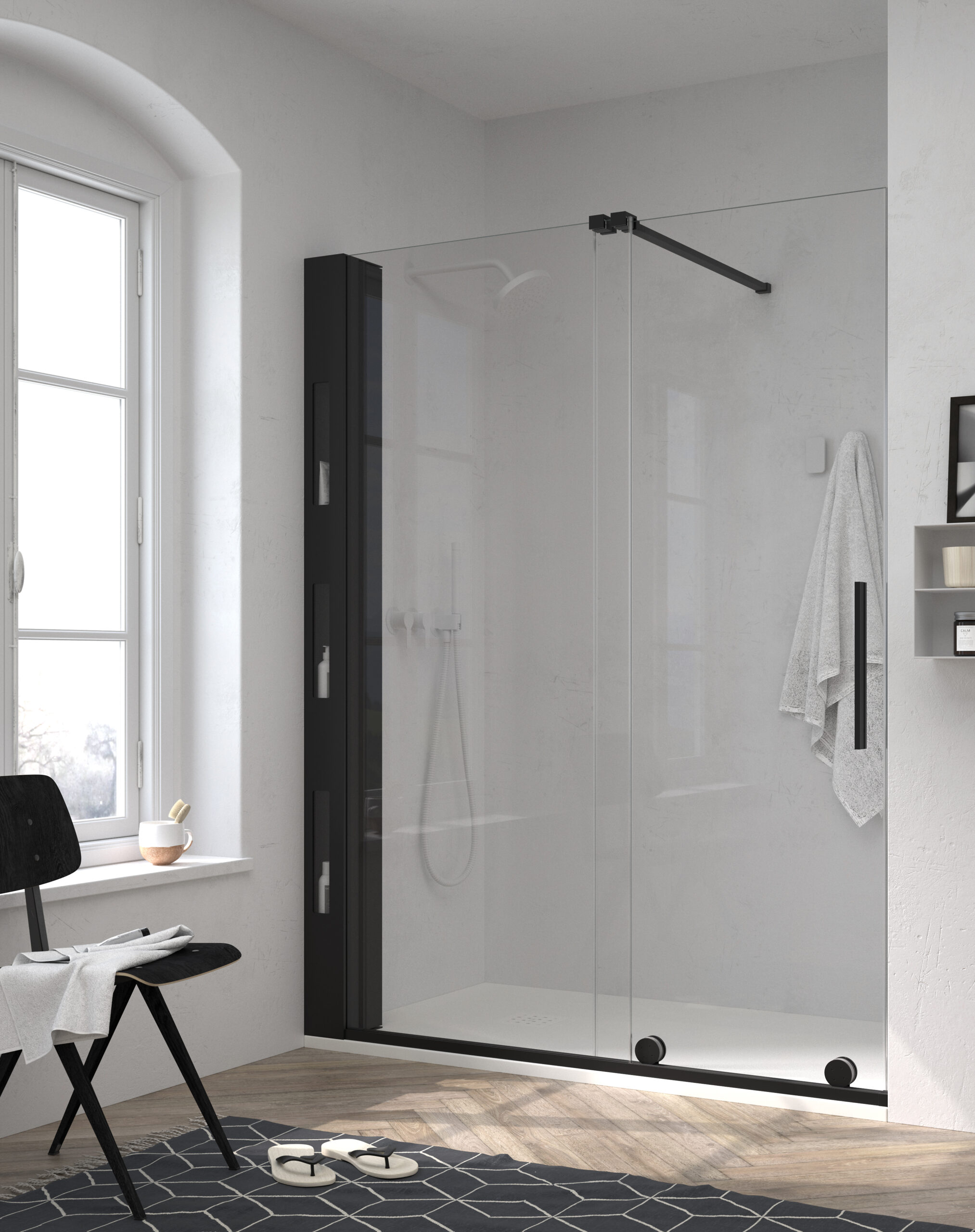 Mampara de ducha Doccia NICOSIA. Colección GEMINIS. Mampara de ducha frontal de una hoja corredera y una hoja fija Vidrio de 8mm. Altura: 1950mm. Antical, Extraible.