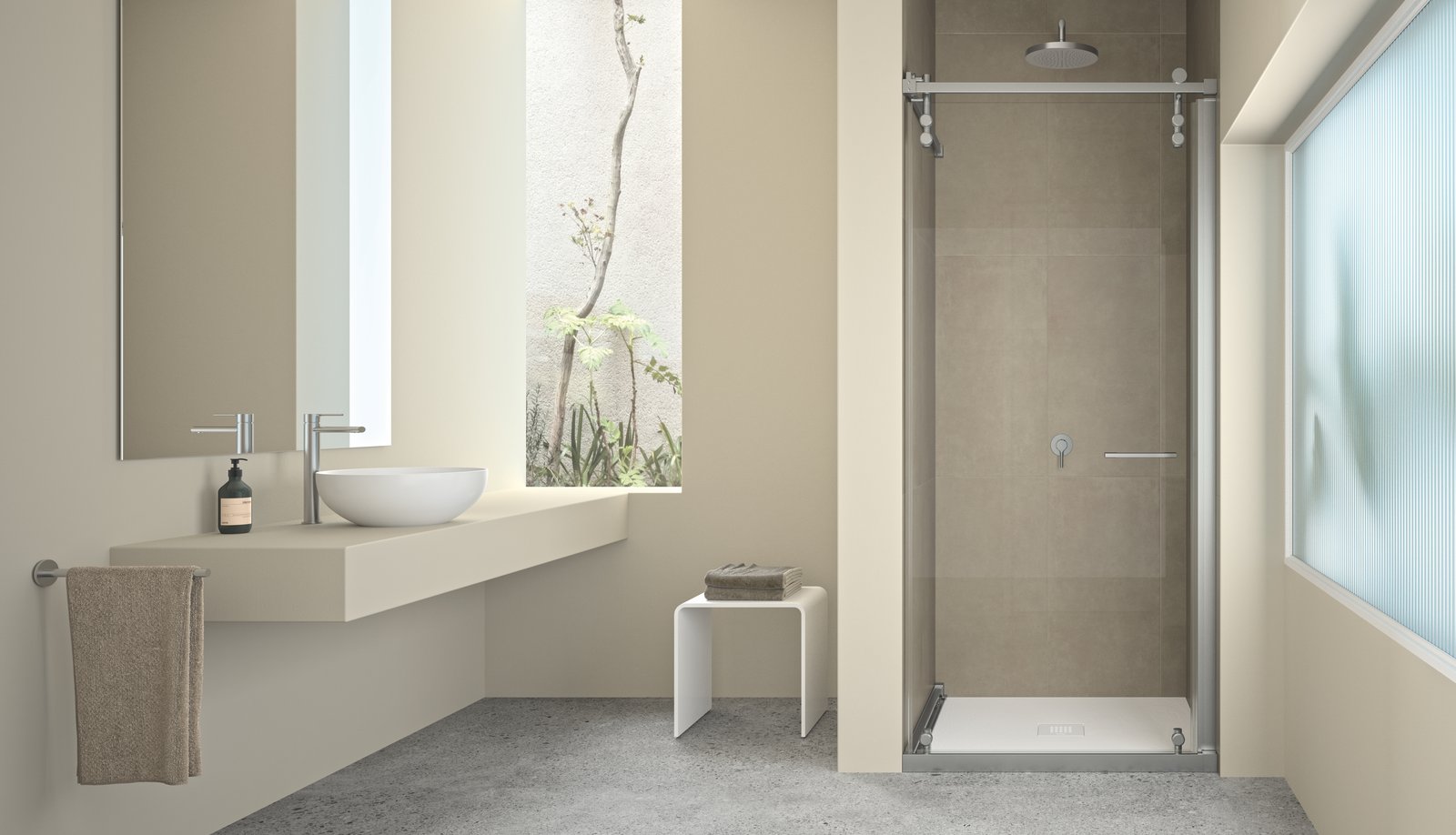Mampara de ducha Doccia ROCHA. Colección LIBRA. Mampara de ducha frontal de una hoja plegable Vidrio de 8mm. Altura: 1950mm. Antical.
