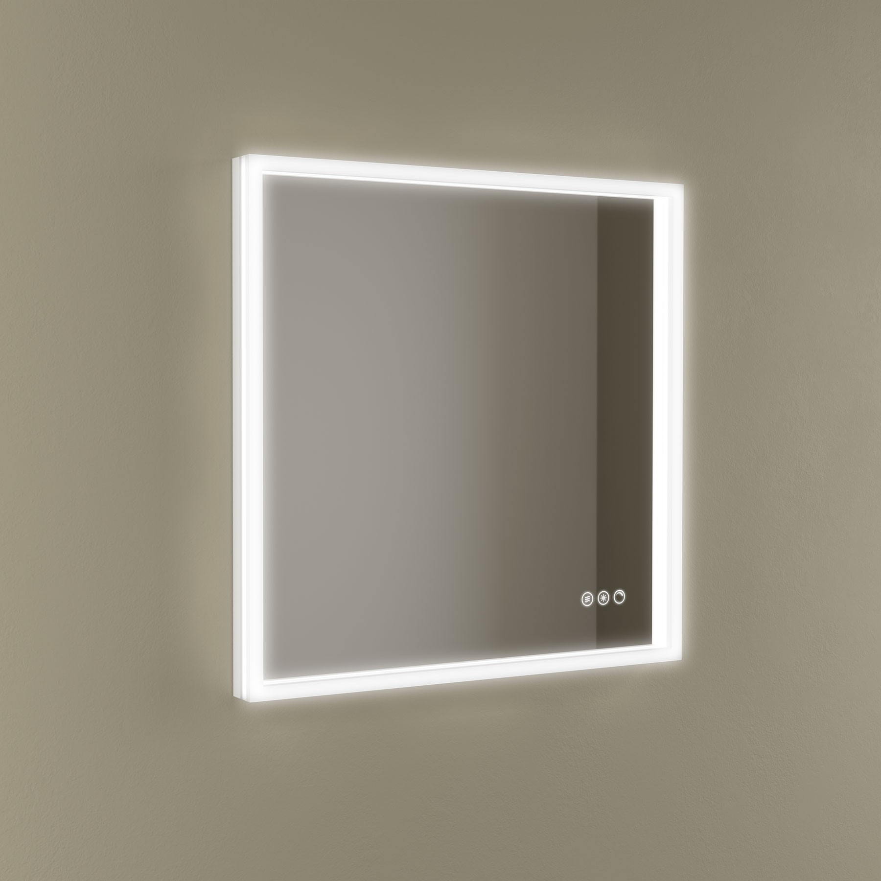 Espejo cuadrado Bi-LED con sensor. 600×600 mm. Temperatura ajustable. IP44.